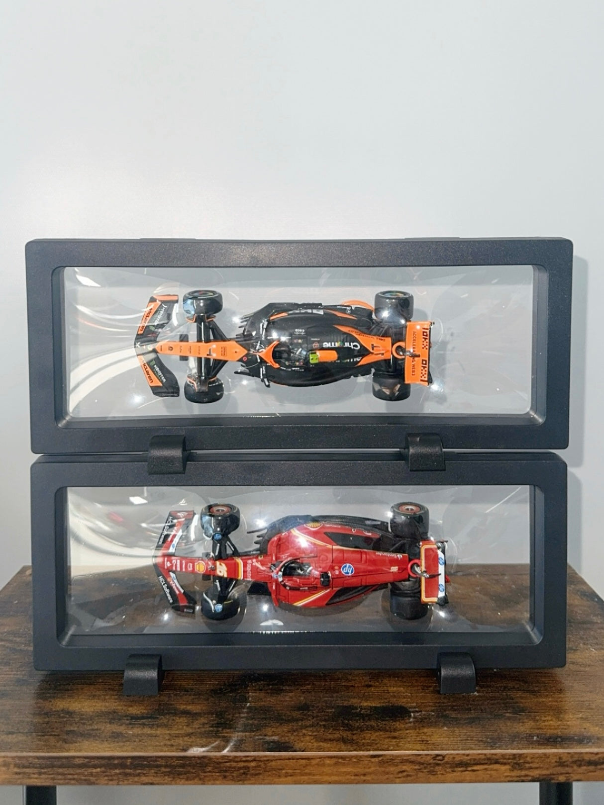 - Scaled at 1:43, 2023 Ferrari SF-24 and 2024 Mclaren MCL-38 replica.